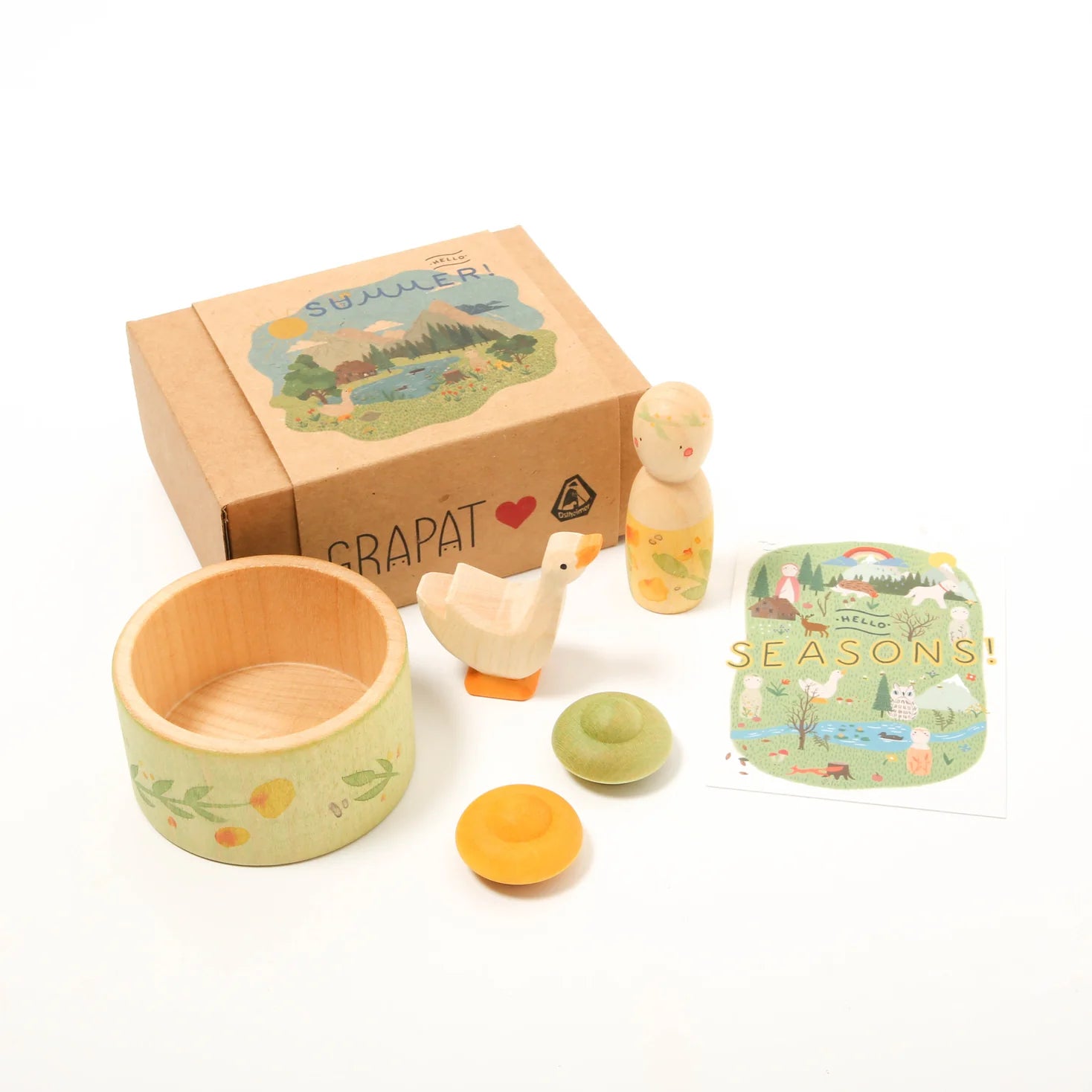 A very special and beautiful Summer themed collaboration between Grapat and Ostheimer, two of our favourite wooden toy makers. A limited edition set inspired by balmy sunshine days.