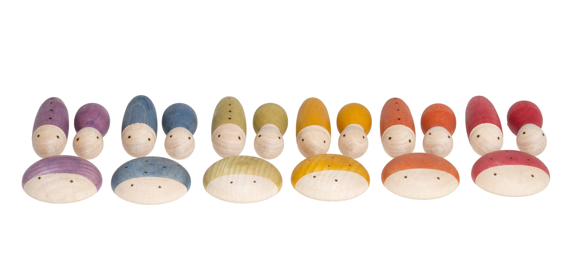This colourful set of 18 insects by Grapat make a wonderful addition to your child's toy collection. You'll receive 6 ladybirds, 6 slugs and 6 ants. Perfect for practising counting and naming colours. These little bugs want to come along on adventures outside and they fit perfectly in tiny hands and pockets.