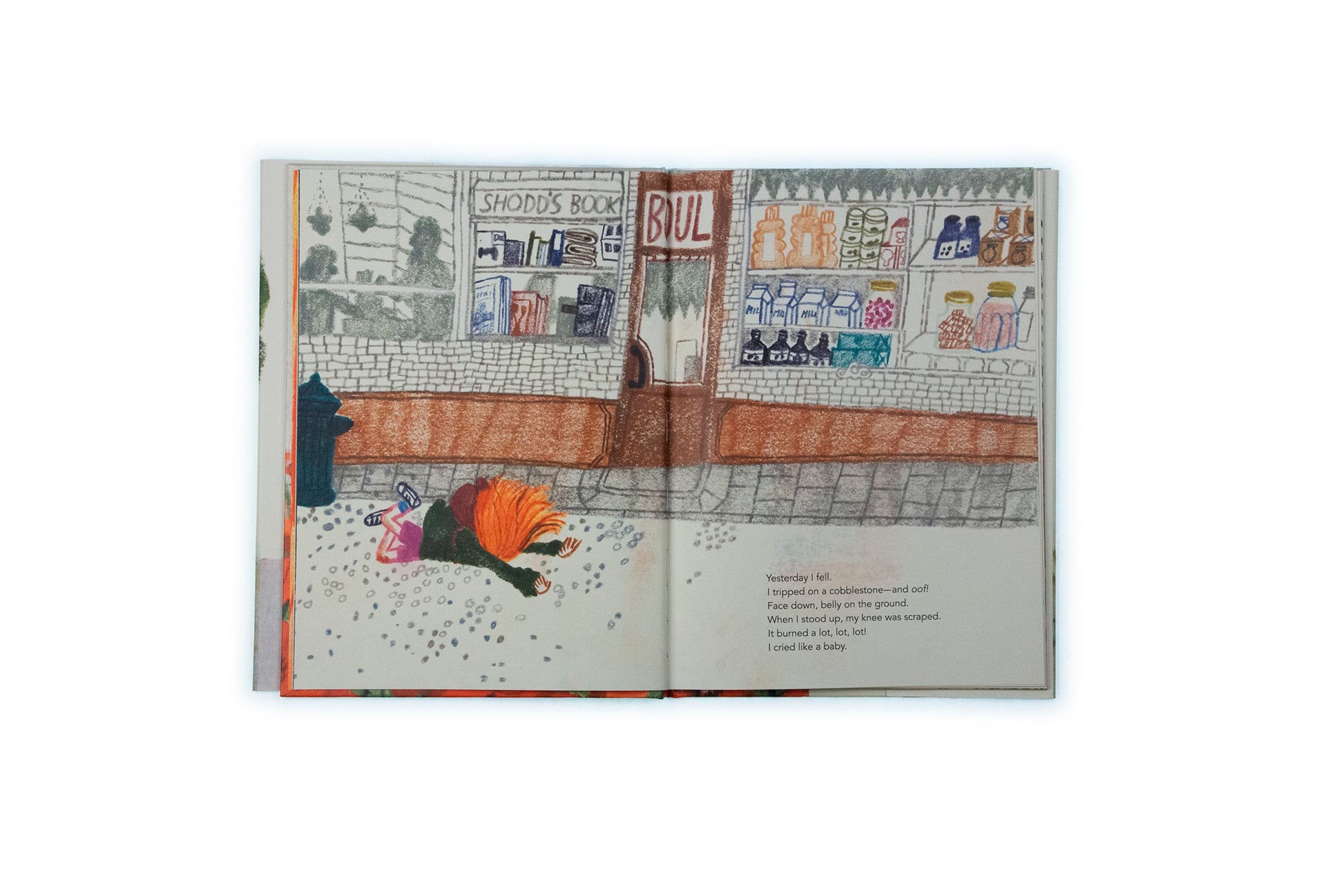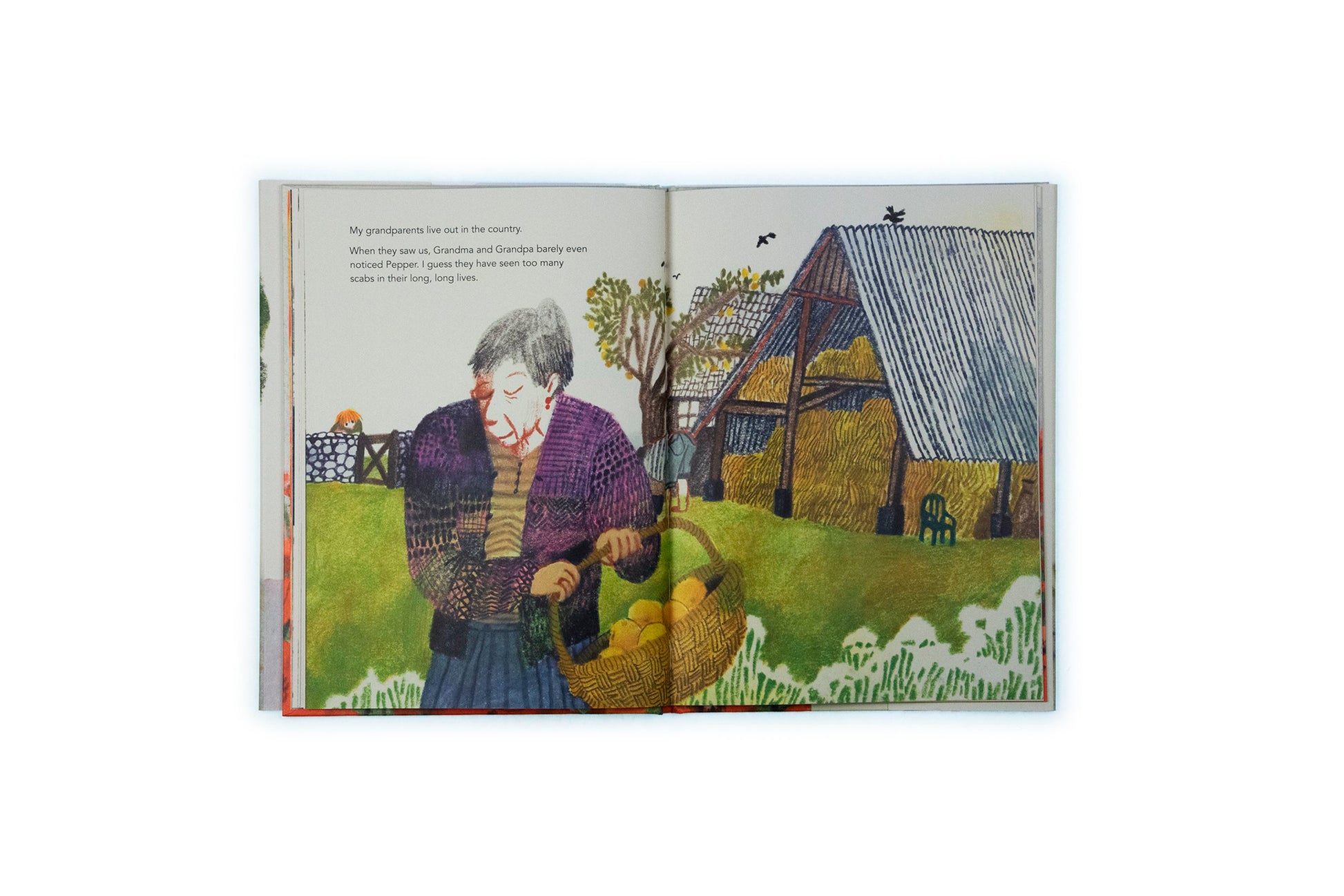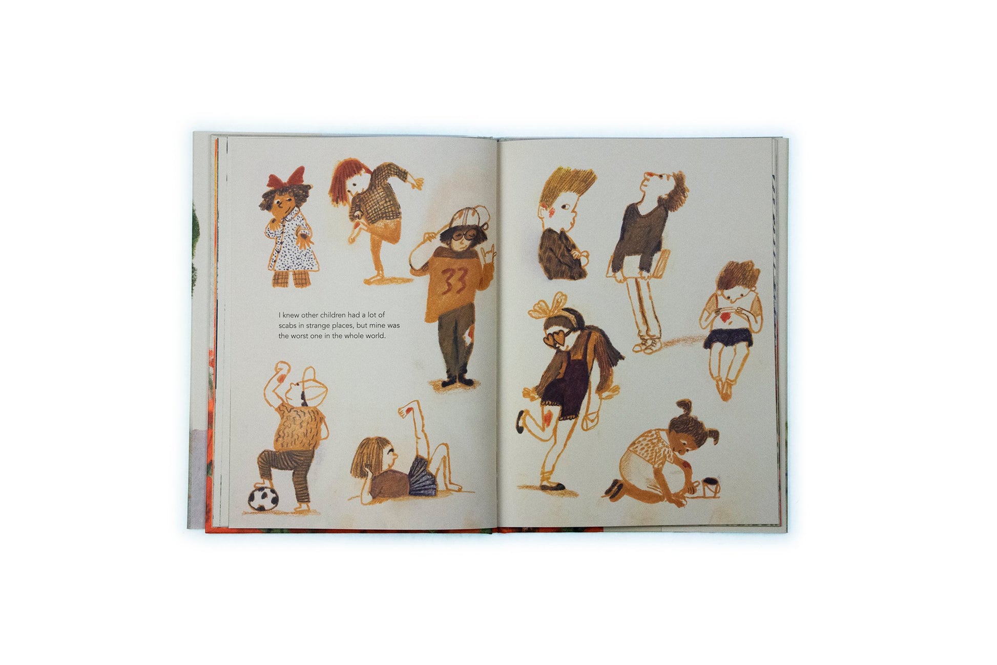 When a little girl falls on the street, scraping her knee, her father tells her not to worry, that 'a beautiful scab will form'. But she does worry! The scab is not beautiful and it's keeping her from bending her knee! When will it ever go away? By the time the scab - who she has named Pepper - falls off, something astonishing has happened: the girl has come to feel affection for the scab and has a hard time letting go.