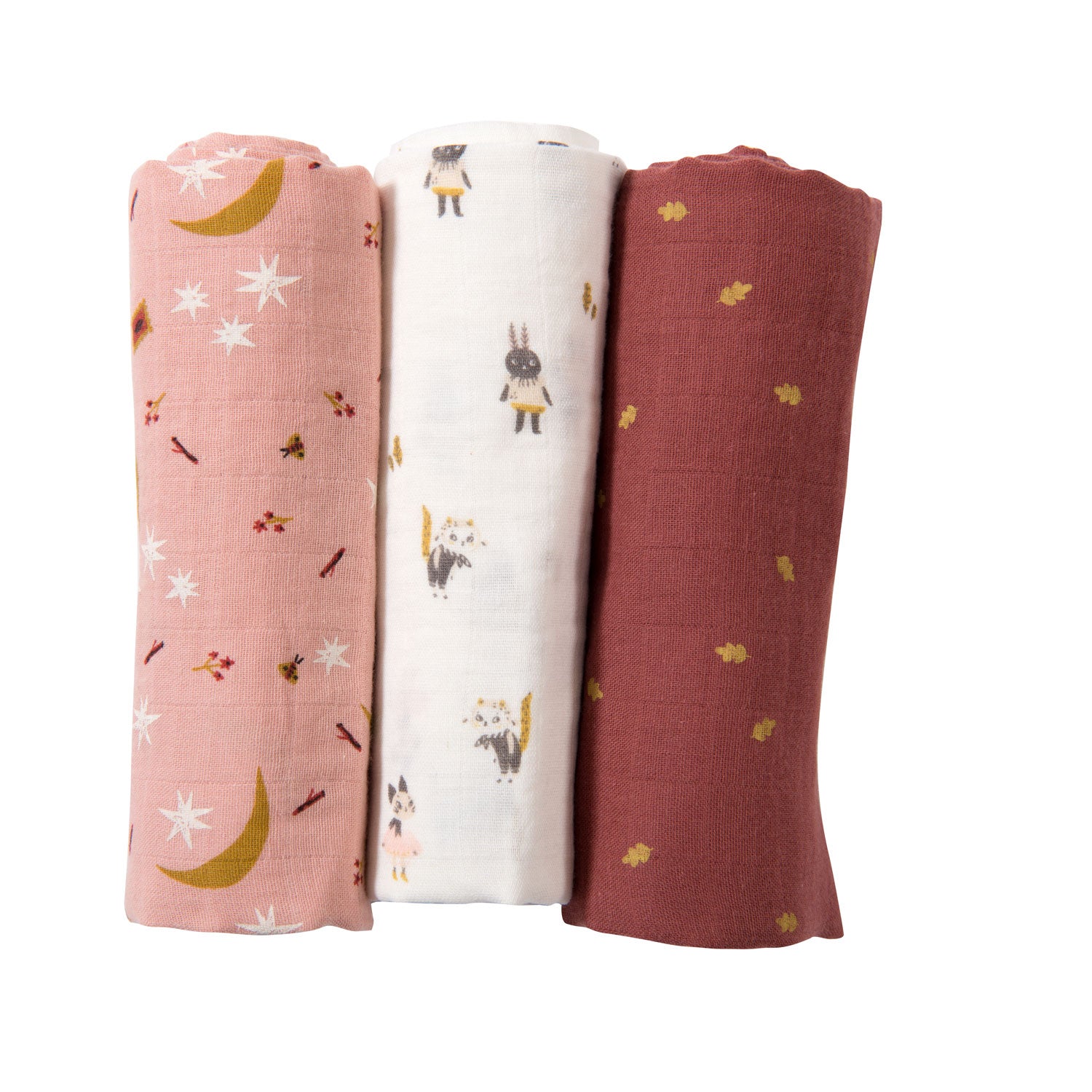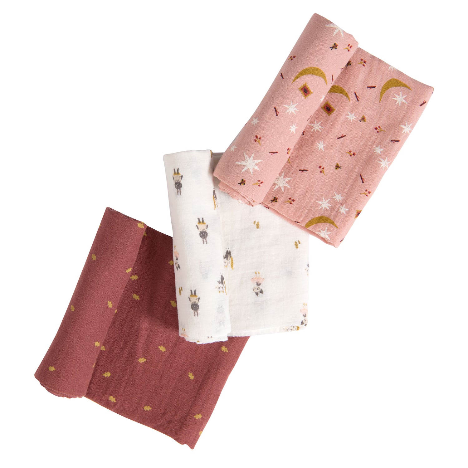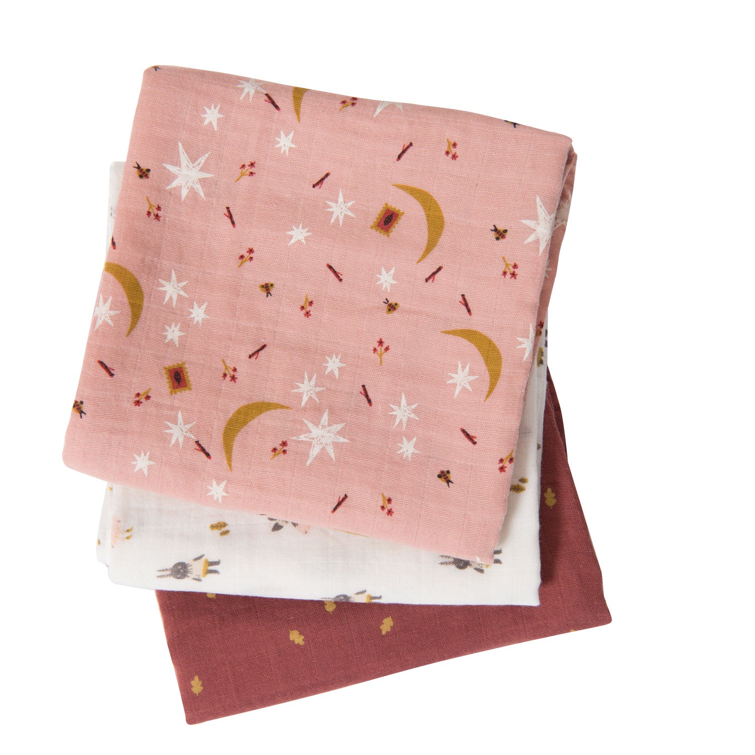 This set of three beautifully soft muslins were made using 100% organic cotton and they feature wonderfully earthy tones with sweet patterns. Both pretty and practical, they would make a lovely present for newborns and their parents.